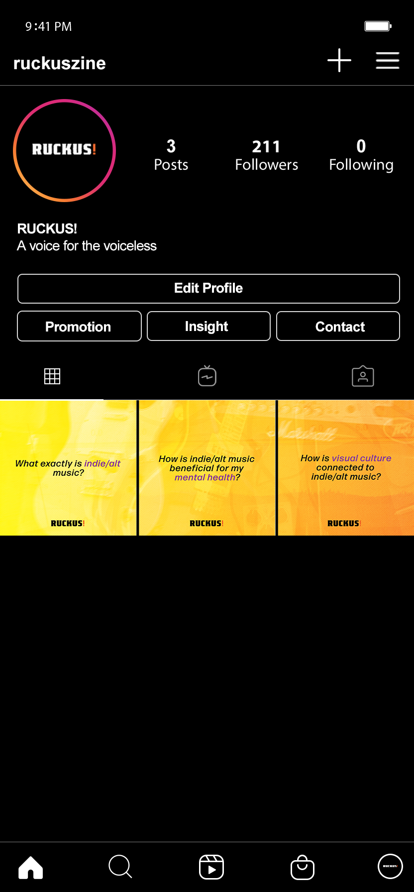 To give my zine an online presence, I decided that Instagram was the best platform to use, due to my age group being 16-30 year olds.